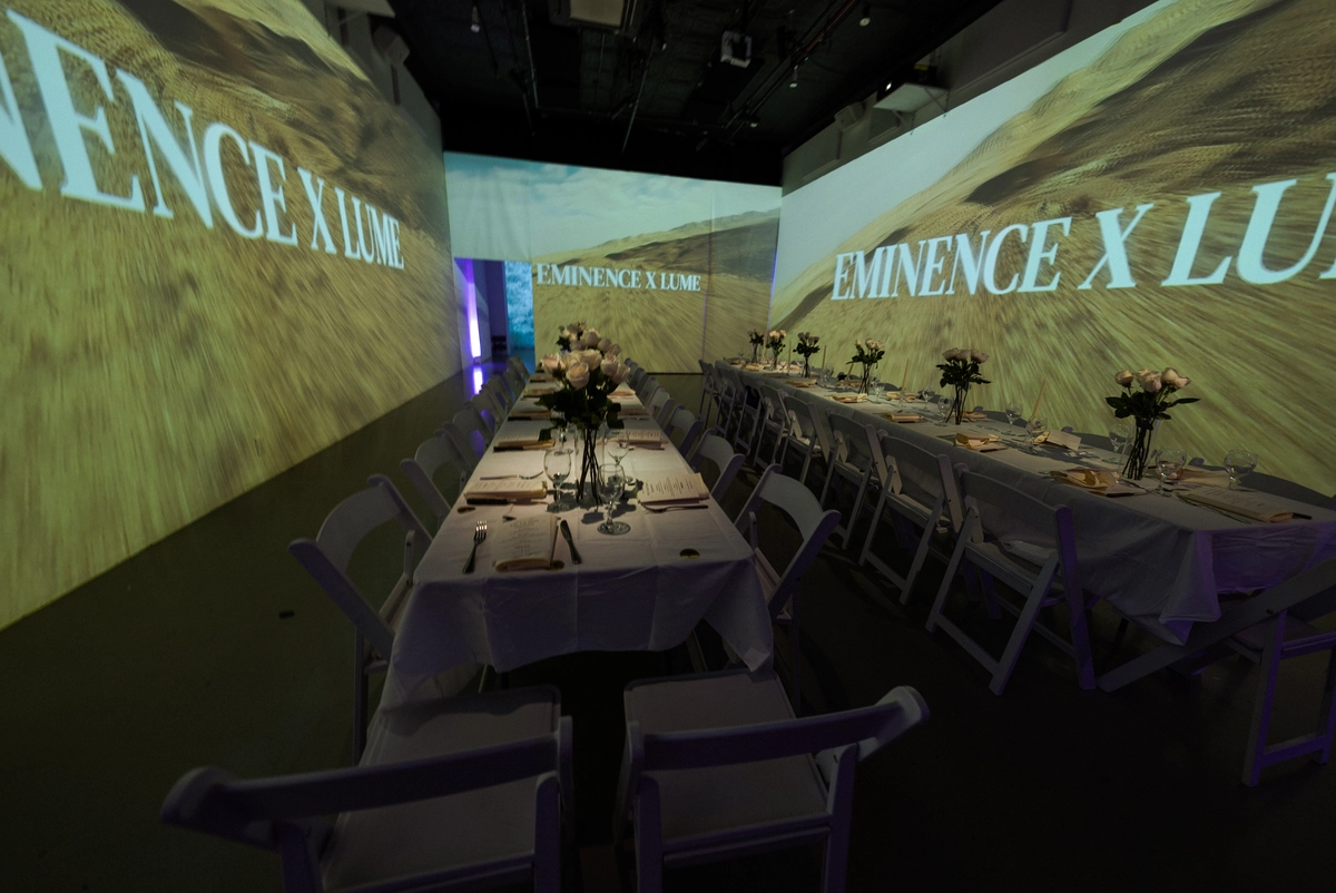 Eminence members club hosted a 3-course dinner with 40 of their elite members in our immersive room. The dinner featured video montage moments that showcased their private excursions around the world. LUME Studios was contracted to assist in the creative direction, immersive content creation, and event production to ensure that all food and beverage was curated to highest of quality.